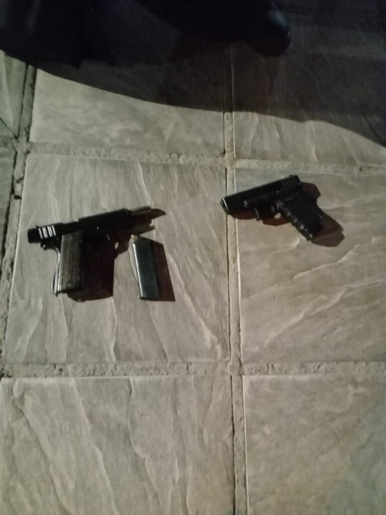 En el momento de la detención, la mujer portaba dos armas de fuego: una pistola automática calibre .45 y una pistola marca Lock calibre 9×19. Las armas fueron secuestradas por la División Especial Criminalística.