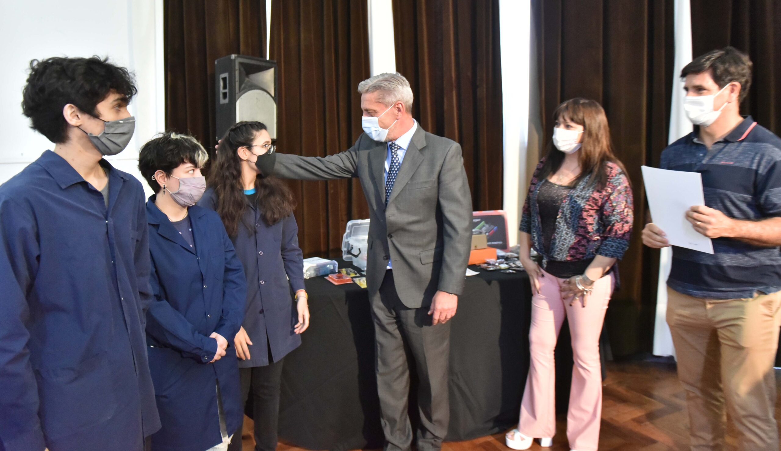 El acto se desarrolló en el Salón de los Constituyentes de Casa de Gobierno y contó con la participación de la ministra de Educación, Florencia Perata; el secretario de Planificación, Obras y Servicios Públicos de la Municipalidad de Rawson, Fernando Vosecky, el director de la Escuela Provincial N° 702, Alexis Williams, subsecretarios, alumnos e invitados especiales.