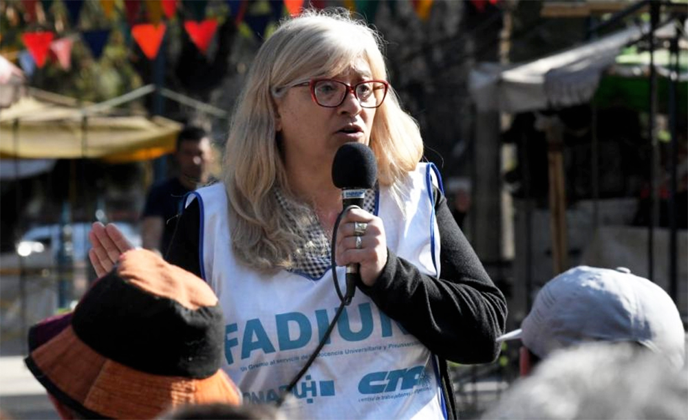 «La voluntad política no existe, solo encontramos imposiciones y diálogos cancelados, esa es la impronta del Gobierno. Para ellos, o apoyás en todo o sos el enemigo, y hoy a la docencia universitaria la consideran como un enemigo», dijo la dirigente gremial.