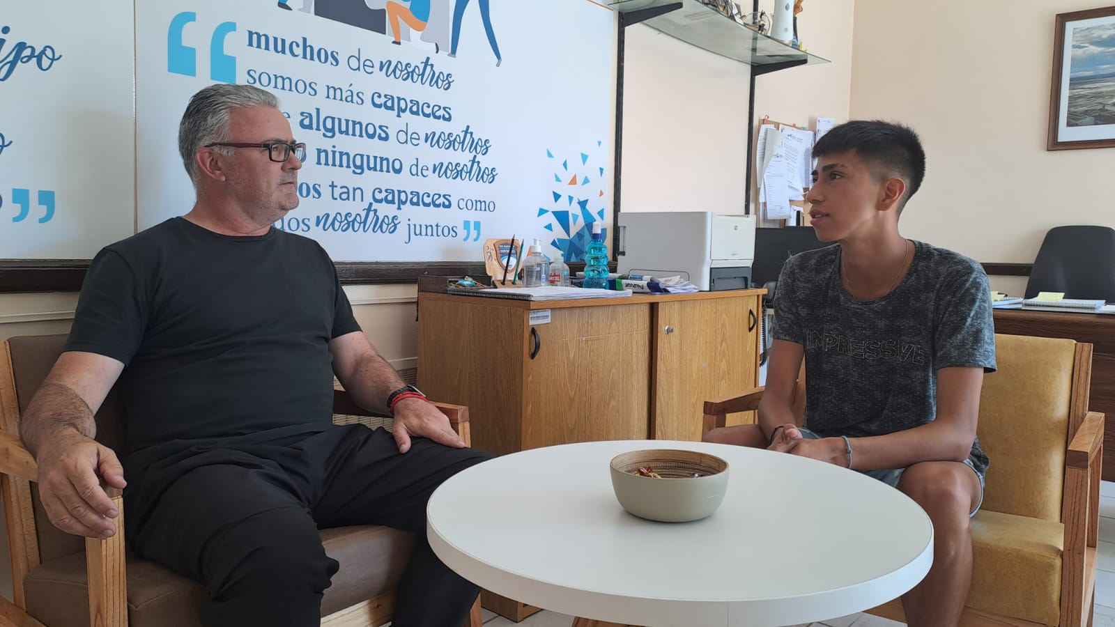 El joven de 19 años es entrenado por Jorge Basiricó y Adriana Calvo, y se reunió esta semana con el profesor Hernán Martínez, presidente de Comodoro Deportes, con quien renovó su apoyo en su carrera deportiva.