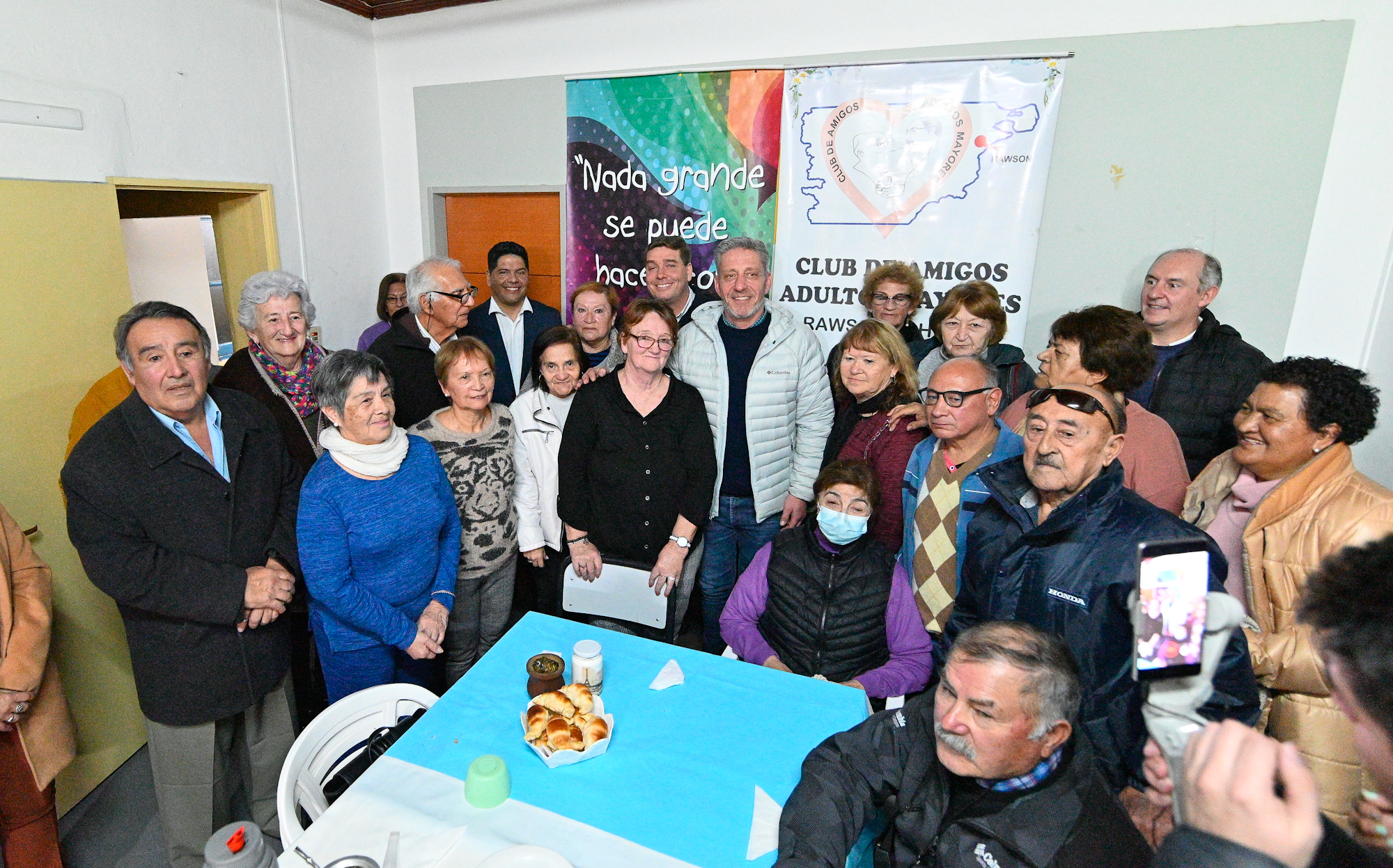 El Gobernador estuvo acompañado por el intendente local, Damián Biss; los ministros de Gobierno y Justicia, Cristian Ayala; de Salud, Fabián Puratich; de Seguridad, Miguel Castro; y de Infraestructura, Gustavo Aguilera; la gerenta General del Instituto de la Vivienda, Ivana Papaianni; el secretario de Pesca, Gabriel Aguilar; y funcionarios del municipio capitalino. Las autoridades fueron recibidas por la presidenta del Club, Beatriz Martina Vila, junto a una gran cantidad de jubilados.