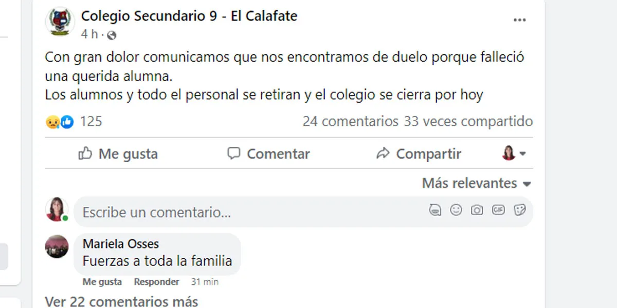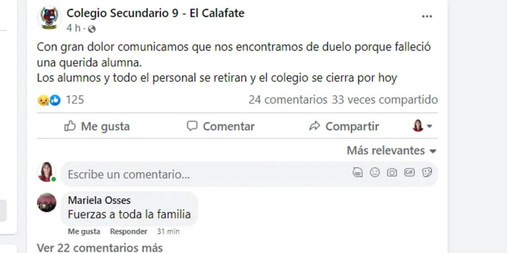 Según informaron los medios locales, se trata de Camila Díaz, quien había salido instantes antes de su casa para tomar el colectivo que la acercaría al Colegio Secundario 9 – El Calafate donde cursaba el tercer año.