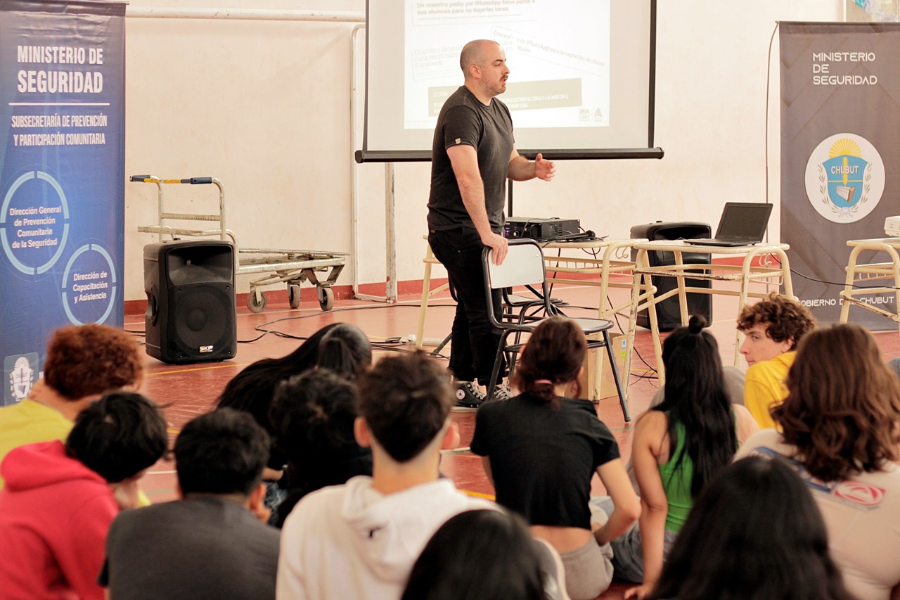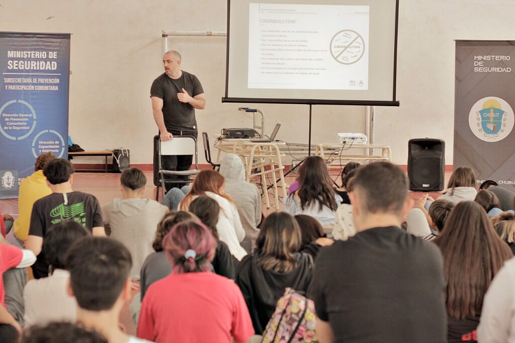 Los equipos del organismo provincial y de la División Cibercrimen de la Policía del Chubut concientizaron sobre las problemáticas del bullying, grooming y otros riesgos a los que los jóvenes pueden estar expuestos a través de las computadoras y los teléfonos celulares en la interacción virtual.