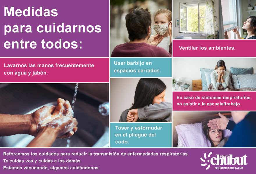La Dirección Provincial de Patologías Prevalentes y Epidemiología, perteneciente al Ministerio de Salud del Chubut que conduce Fabián Puratich, recordó a toda la población la importancia de renovar las medidas de prevención para enfermedades respiratorias, dada la situación epidemiológica actual del Covid-19.