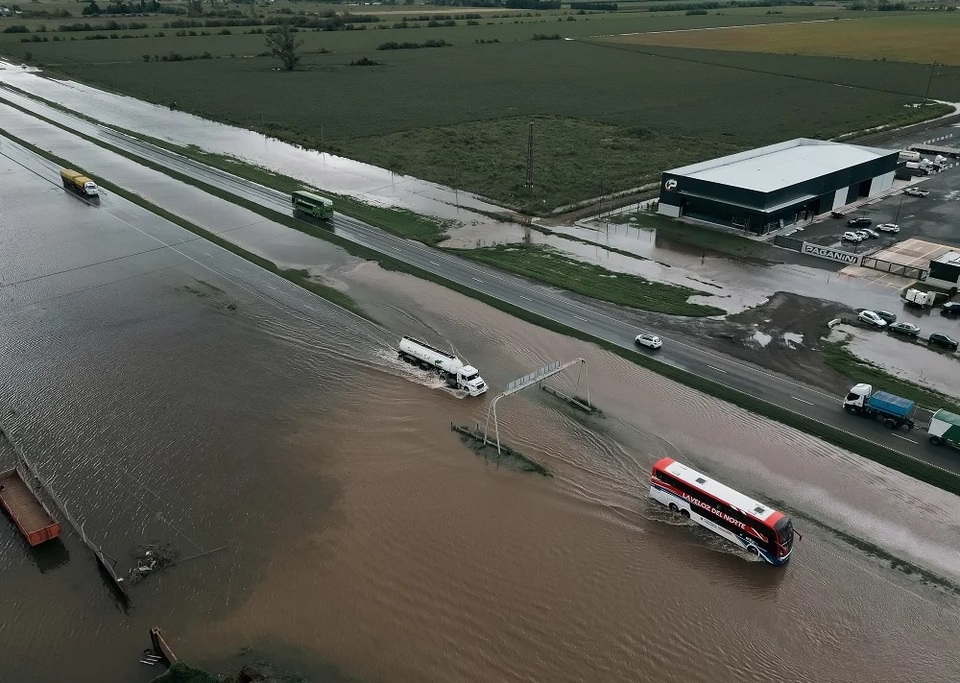 «Al llegar al kilómetro 115 encontramos que había camiones con balizas y había un corte total en la ruta, así que bueno, paramos atrás de los camiones«, explicó Daniel, describiendo cómo la lluvia copiosa provocó un rápido ascenso del agua hasta convertir la zona en «un mar, está completamente anegado, es todo un solo bloque de agua».