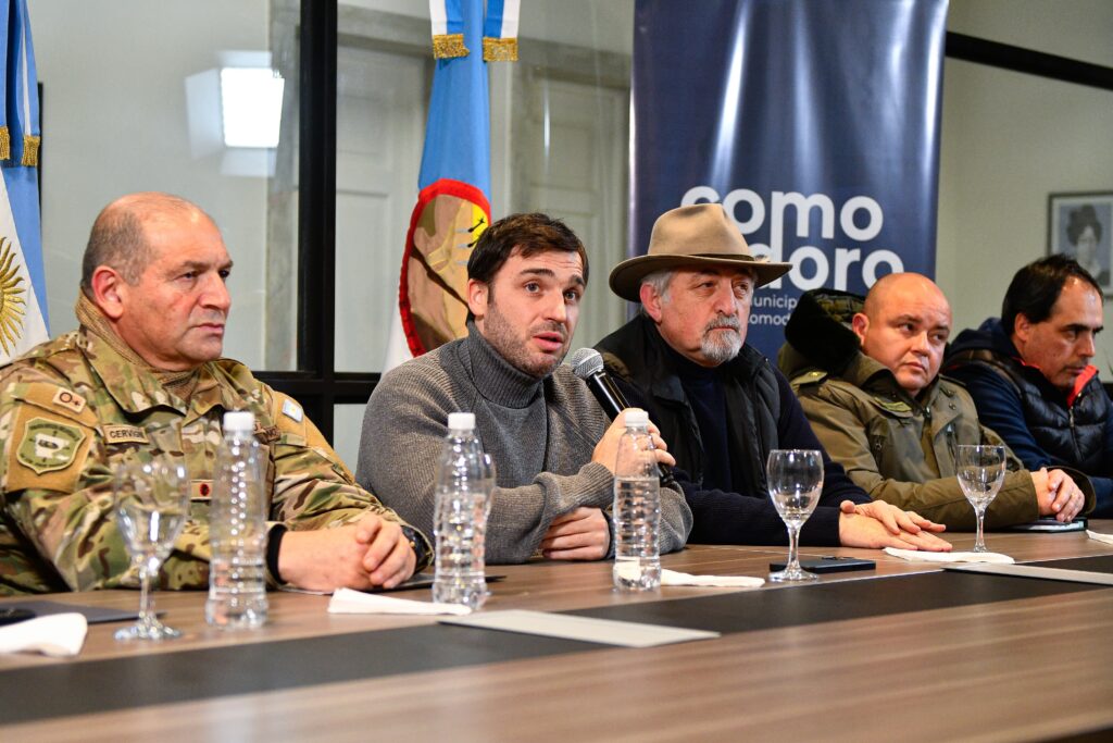 De la conferencia también formó parte el ministro de Defensa de la Nación, Luis Petri, que participó de manera remota a través de videollamada y destacó el “trabajo colaborativo” en este “temporal inédito” que azota a Chubut y la región. “Es importante que sigamos tomando recaudos y precauciones porque sigue el alerta naranja”, reforzó el funcionario nacional y remarcó que “desde el Ministerio de Defensa y el Estado Mayor Conjunto vamos a seguir colaborando con el auxilio, la protección y la salvaguarda en esta emergencia”.
