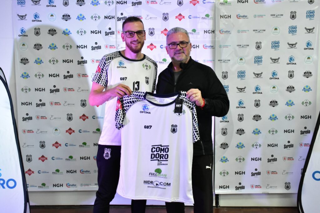 En el salón vidriado del Club Huergo se presentó la nueva indumentaria del equipo de handball masculino de mayores de Nueva Generación. Además, se hizo un emotivo reconocimiento al jugador, capitán y referente, Rodrigo “Pajarito” Cosignani, por su enorme trayectoria y compromiso con la institución.