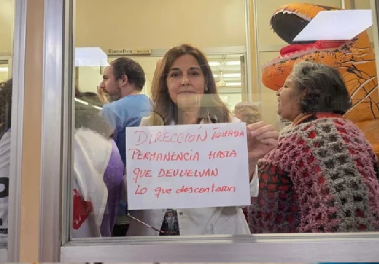 Pese a la toma, desde la dirección aseguraron que el hospital continúa funcionando y que “el presupuesto está garantizado, los bonos remunerativos para el personal se mantienen y las obras por más de 30 mil millones de pesos avanzan con financiamiento propio”.