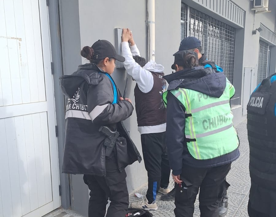 Ante esta situación, la ciudadana señaló a uno de los hombres que pasaba por el lugar, por lo que un efectivo policial de Servicio Adicional que se encontraba en el Banco Chubut salió a su persecución y logró interceptarlo. El sujeto intentó deshacerse del equipo HT, pero fue aprehendido de inmediato.