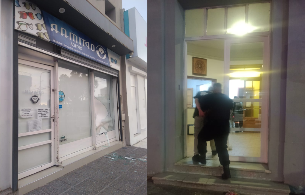 Según la información recabada, un transeúnte alertó a la policía sobre un individuo con pantalón negro que, acompañado por los contraventores mencionados, habría destrozado con una patada el cristal de la vidriera del establecimiento, para luego huir por la calle España en dirección a Sarmiento.