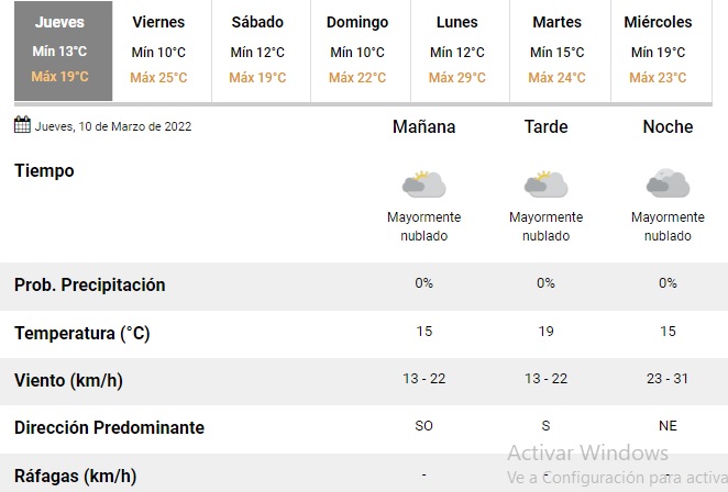 Según informa el Servicio Meteorológico Nacional, la ciudad se mantendrá nublada durante todo el día, sin la presencia de ráfagas de viento.
