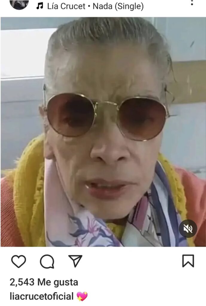 Lía Crucet, a sus 71 años, reapareció en Instagram con una foto actual. La reconocida y querida cantante tropical, que está internada en un geriátrico Mar del Plata, hizo eco de una selfie en la que se la ve muy coqueta, luciendo unos anteojos de sol redondos y muy cancheros, en diálogo con un suéter y un pañuelo re colorido.