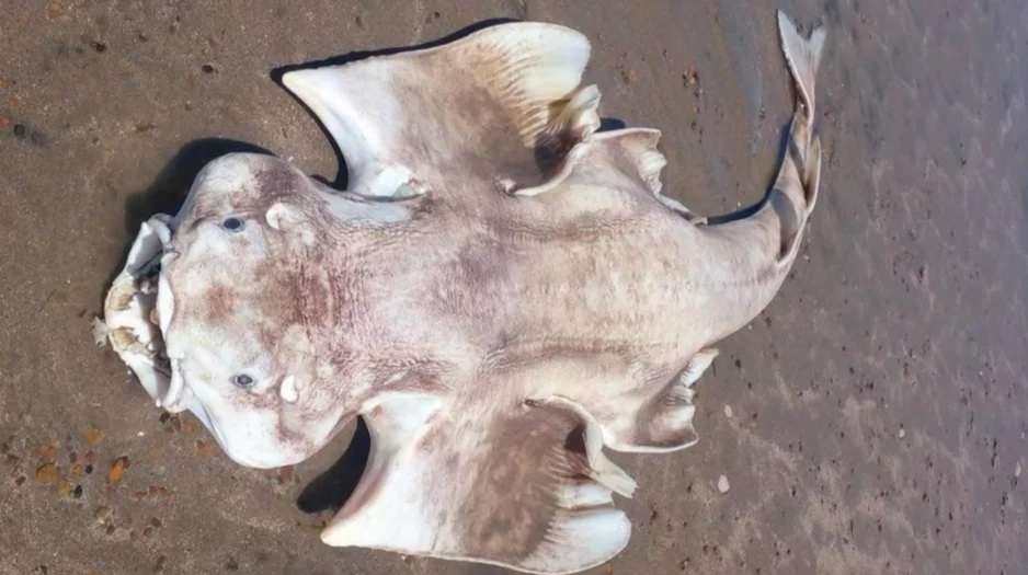 El ejemplar fue recientemente encontrado muerto en Playa Unión. El nombre científico es Squatina guggenheim y es conocido por los pescadores como pez ángel.