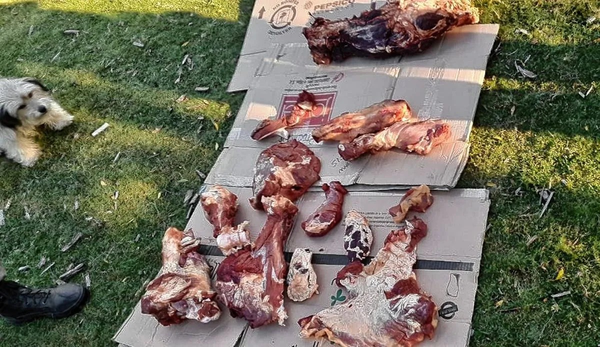 En la otra casa encontraron la cabeza de uno de los vacunos, múltiples pedazos de cuero, un aparejo, dos balanzas, dos sierras, una piedra de afilar, otro trozo de cuero, una ubre de vaca, cuatro ganchos, dos hojas de sierra y once trozos de carne vacuna, entre otros elementos.