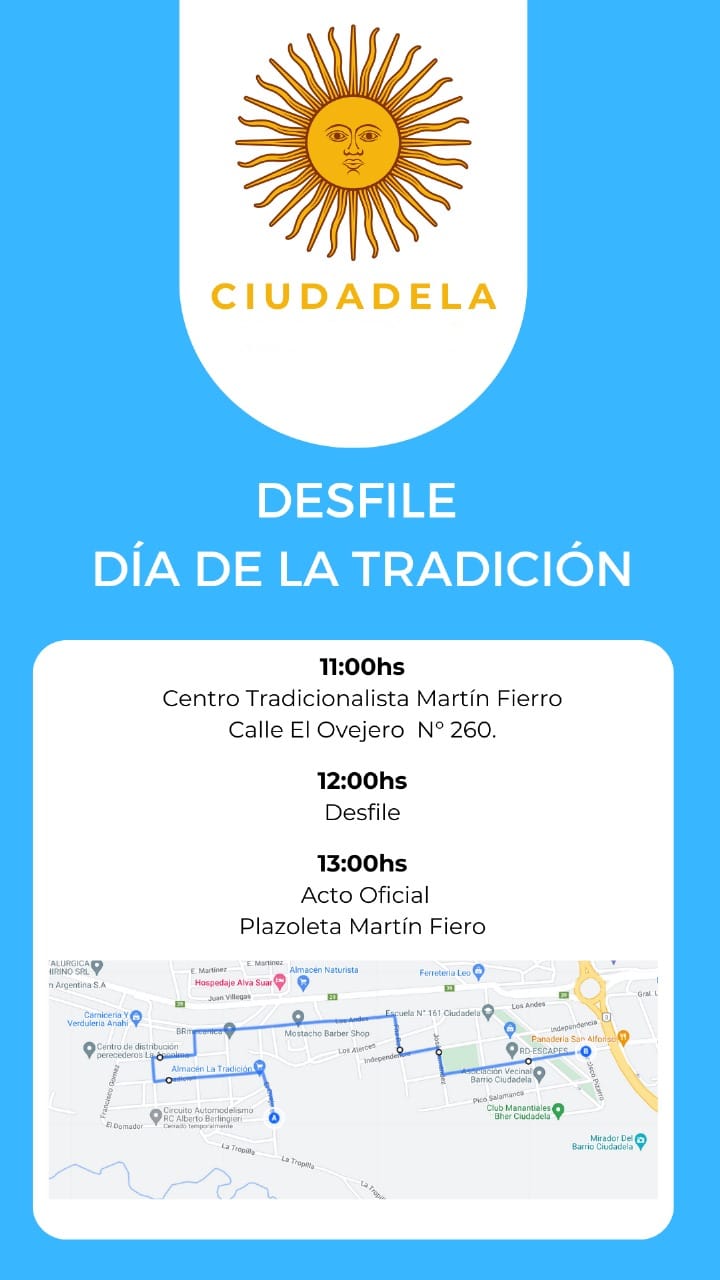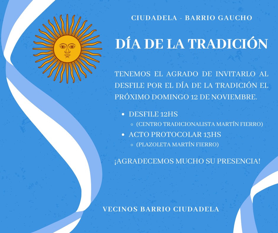 Los vecinos del Barrio Ciudadela invitan a la comunidad en general a participar del desfile por el Día de la Tradición del próximo domingo 12 de noviembre.