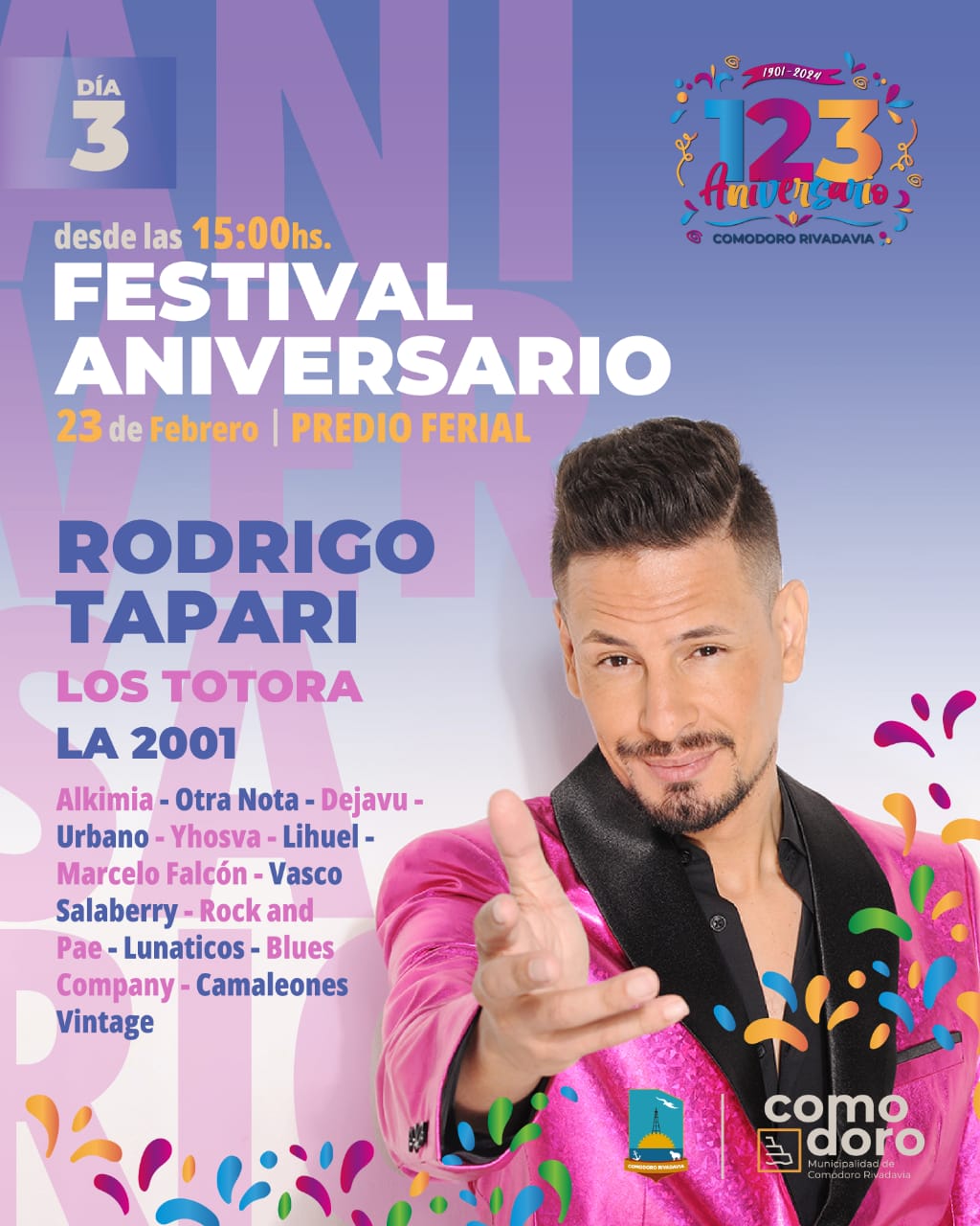 Comodoro Rivadavia se prepara para celebrar su 123º aniversario con una gran fiesta que se extenderá del 21 al 23 de febrero. El evento contará con una amplia variedad de artistas locales y nacionales.