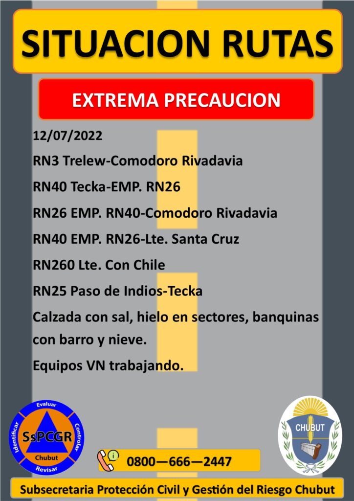 A raíz de las nevadas que tuvieron lugar este fin de semana, se solicita «extrema precaución» en las rutas de la provincia del Chubut.