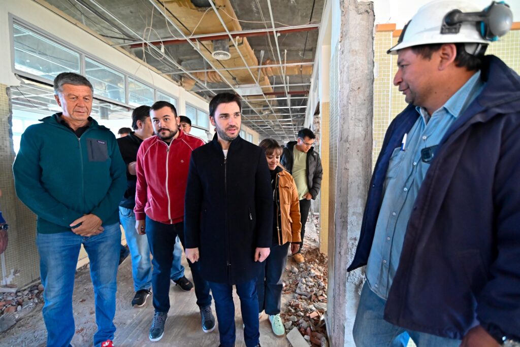 El Gobernador del Chubut, Ignacio Torres, junto al vicegobernador Gustavo Menna, visitaron este sábado la obra de refacción, refuncionalización y ampliación de la Escuela 704 «Biología Marina» de Comodoro Rivadavia.