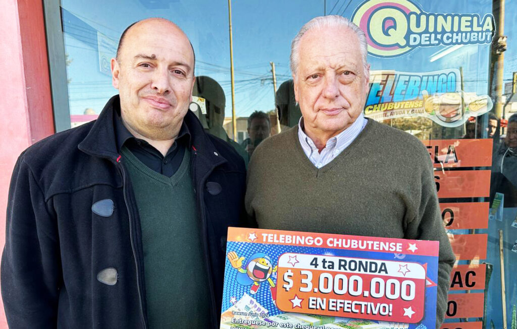 En la entrega simbólica estuvieron presentes el subgerente de Juegos del Instituto de Asistencia Social (IAS) Lotería del Chubut, Federico Martín, y el titular de la Agencia 1001, Eduardo Engrassi, quien vendió el número ganador.