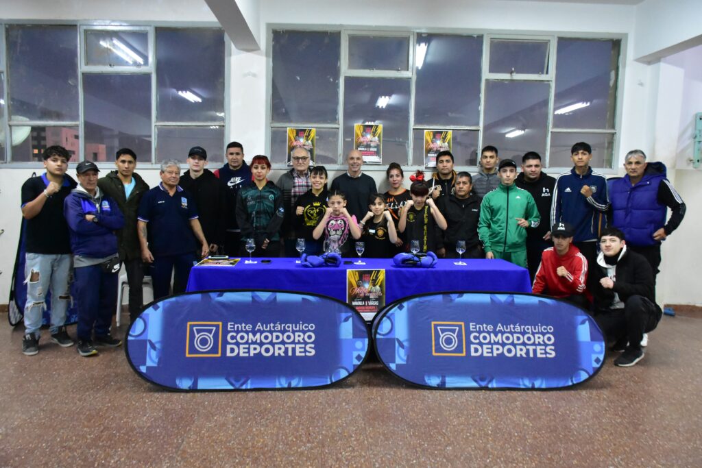 La presentación se realizó en la sala de boxeo del Municipal Nº1, encabezada por el director de Deportes Martín Gurisich, con la presencia del promotor Vicente “Vasco” Arisnabarreta, también los púgiles locales Aylen Aguirre y Ezequiel Mansilla, y Camila Jaramillo en representación del Team Mellado, que tendrá cuatro pequeñas realizando una exhibición de kickboxing en la previa de los combates amateurs.